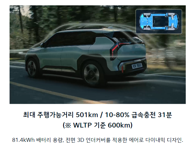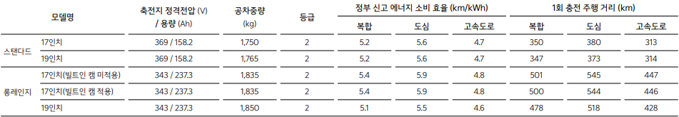 - 1회 충전 시 최대 501km까지 주행 가능 (롱레인지 모델 기준)