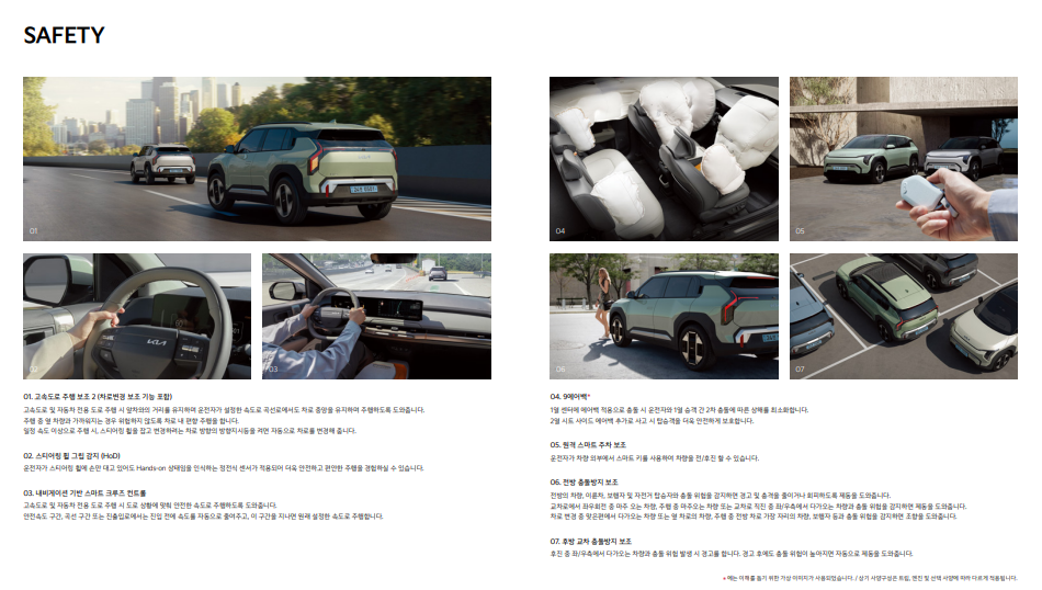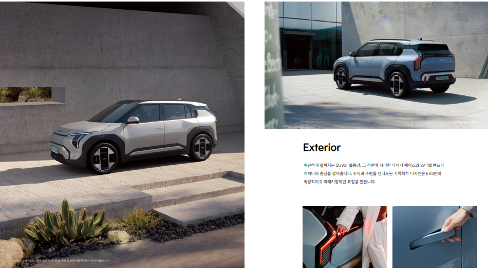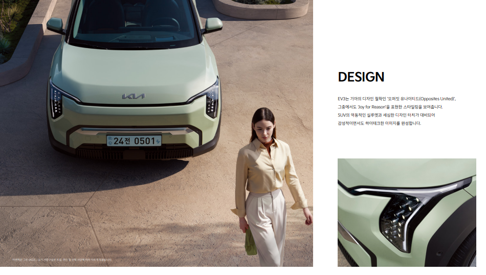 - 혁신적인 디자인: 기아의 새로운 디자인 철학인 'Opposites United'를 바탕으로 탄생한 EV3는 대담하고 세련된 디자인을 자랑합니다.