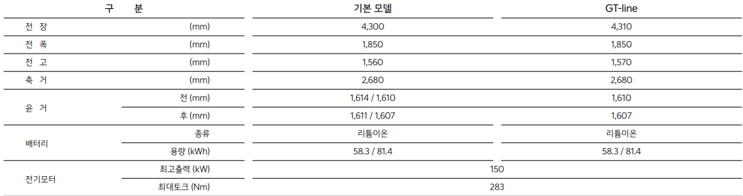 - 뛰어난 주행 성능: 전기차 특유의 정숙하고 부드러운 주행감과 함께, 역동적인 주행 성능을 제공합니다.