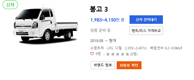 👇👇👇 봉고3 경쟁차량 신차 정보 👇👇👇