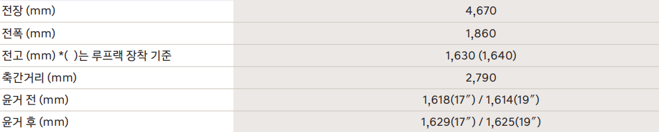 넥쏘의 크기는 전장 4670, 전폭 1860, 전고 1630, 축거 2790mm입니다.