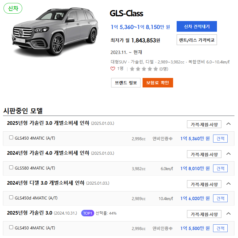👇👇👇 벤츠 gls450 경쟁차량 신차 정보 👇👇👇
