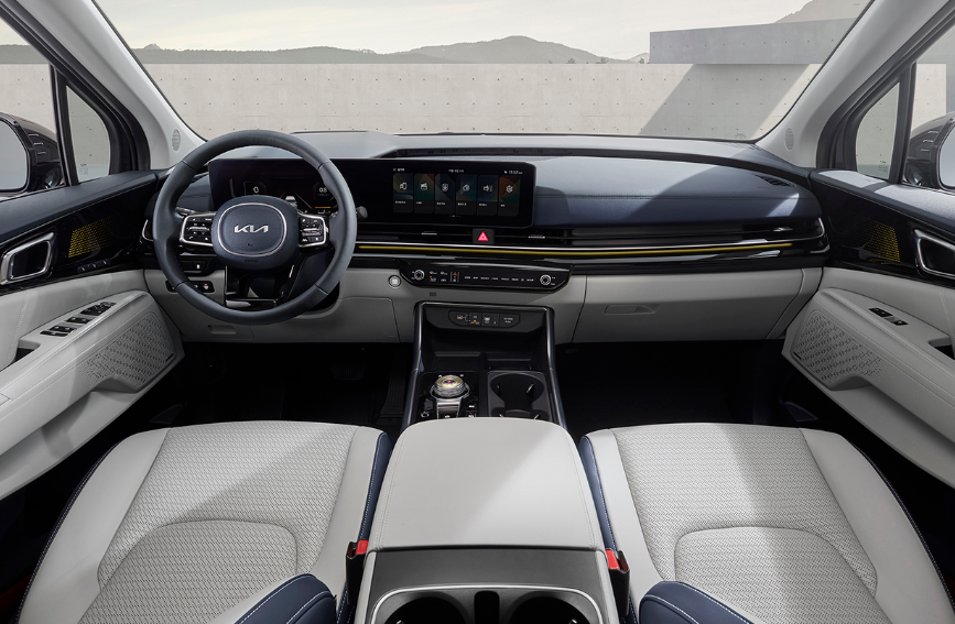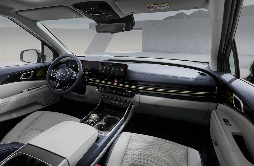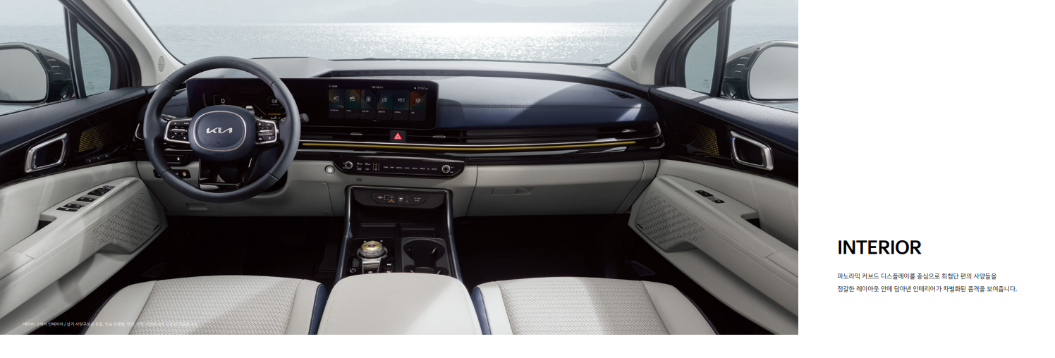 카니발 하이브리드의 내부는 넓고 편안한 공간을 자랑하며, 고급스러운 소재와 세련된 디자인으로 탑승객에게 안락함을 제공합니다. 다양한 편의 기능과 첨단 기술이 적용되어 편리한 운전 환경을 조성합니다.