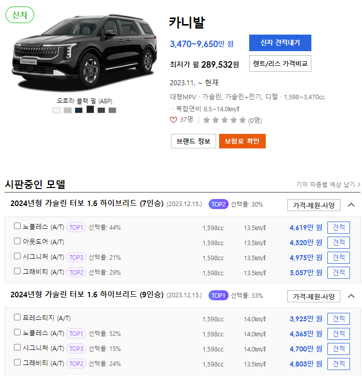 카니발 하이브리드 가격표