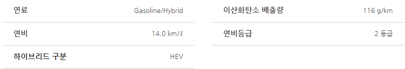 - 연비: 복합 연비 13.5km/L (19인치 휠 기준)