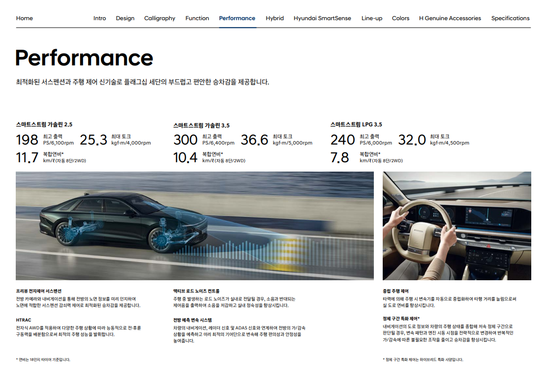 가솔린, LPI, 하이브리드 등 다양한 파워트레인을 선택할 수 있어 소비자의 취향과 주행 환경에 맞춰 차량을 선택할 수 있습니다.