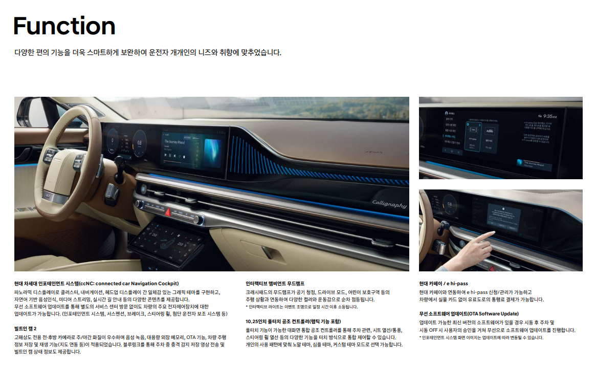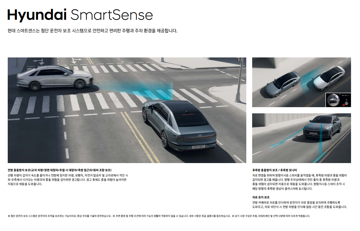 첨단 안전 및 편의 기능: 차선 이탈 방지 보조, 스마트 크루즈 컨트롤, 전방 충돌 방지 보조 등 다양한 첨단 안전 기능을 탑재하여 안전한 주행을 지원합니다. 또한, 12.3인치 슈퍼비전 클러스터, 12.3인치 내비게이션, 헤드업 디스플레이 등 첨단 편의 기능을 통해 더욱 편리한 운전 경험을 제공합니다.