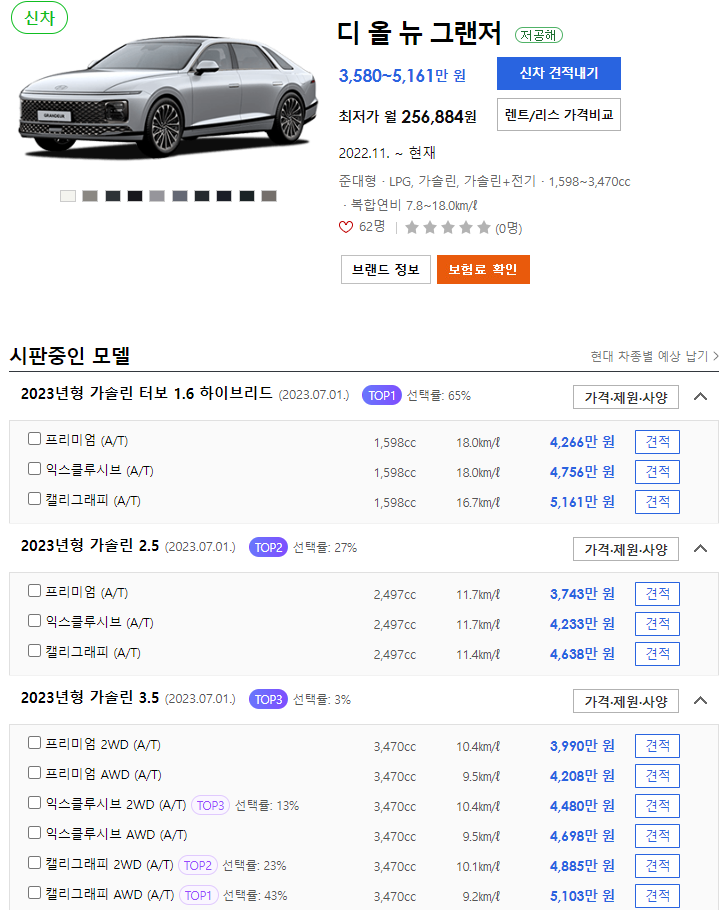 👇👇👇그랜저 경쟁차량 신차 정보👇👇👇