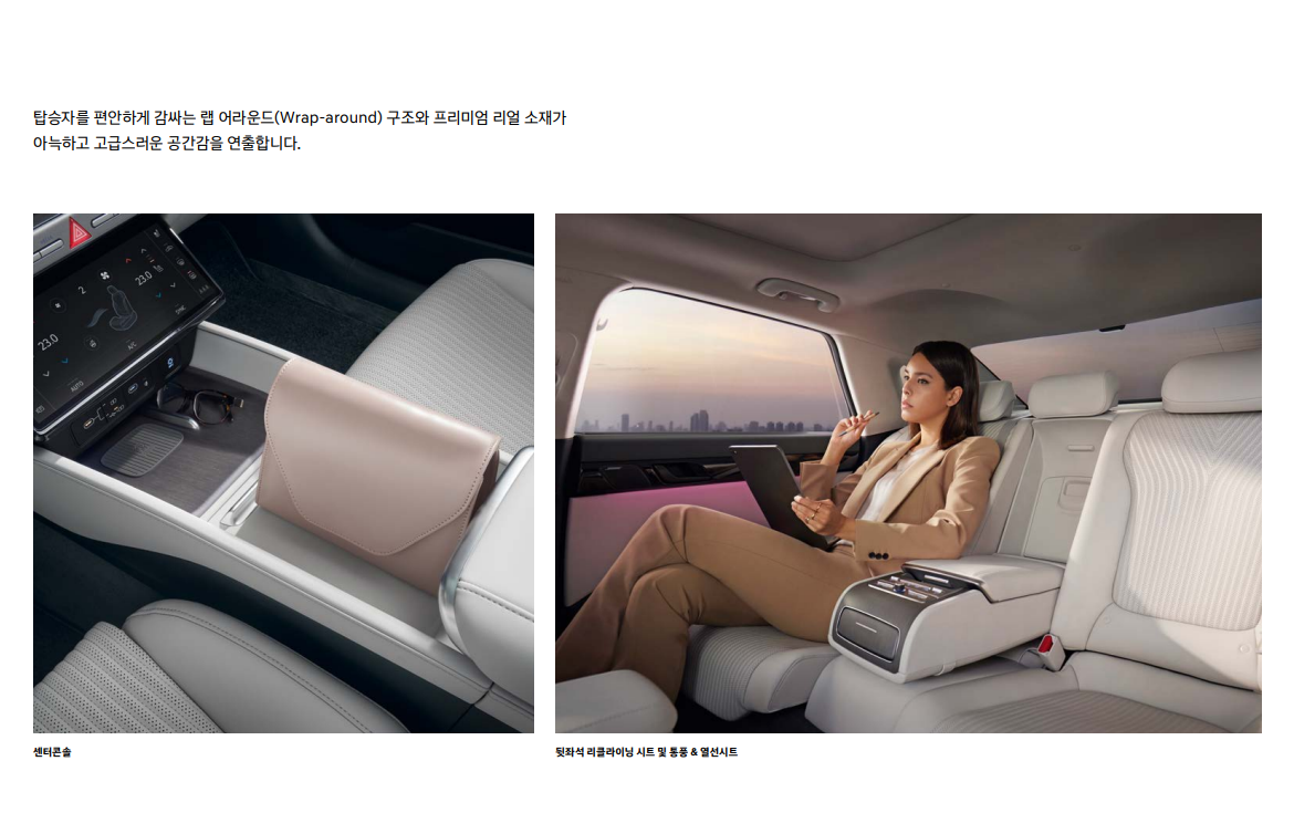 넓고 편안한 실내: 넓고 안락한 실내 공간은 그랜저의 자랑입니다. 고급 소재를 사용하여 품질감을 높였으며, 다양한 편의 기능을 탑재하여 탑승객에게 최고의 편안함을 제공합니다.
