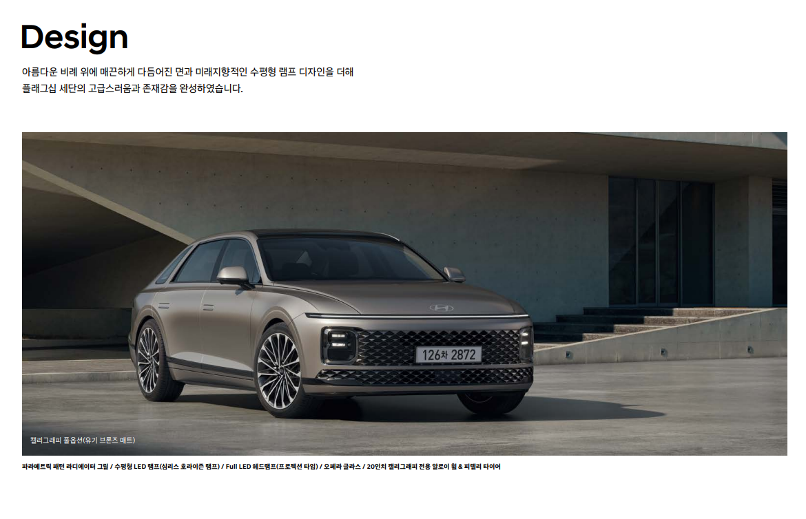 그랜저의 디자인을 살펴보겠습니다.
