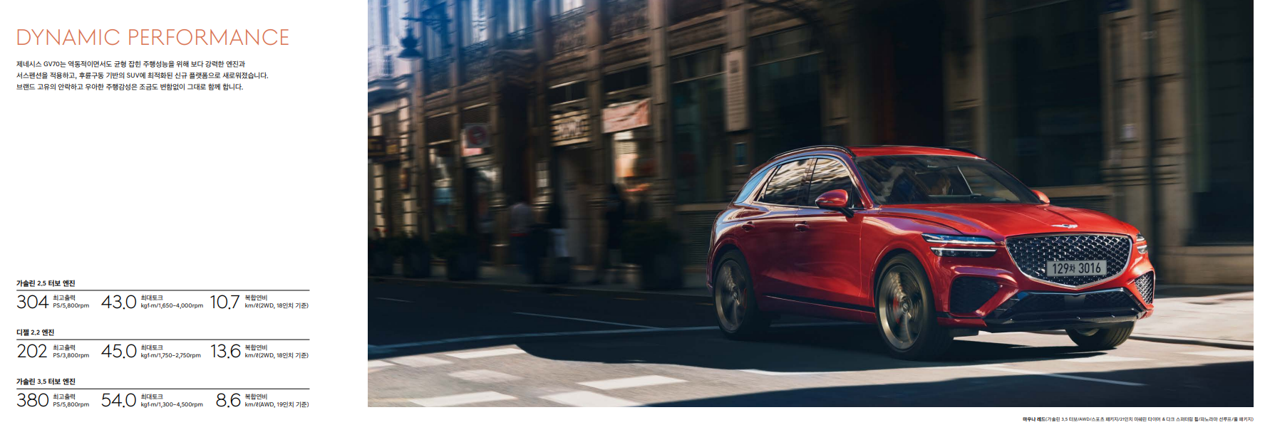 제네시스 GV70 성능 제원표