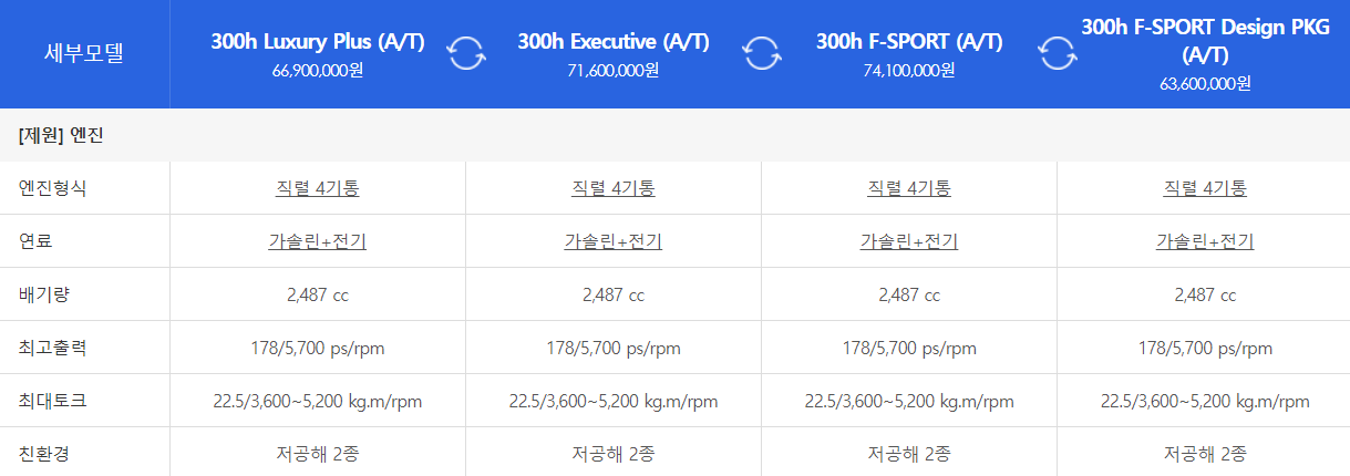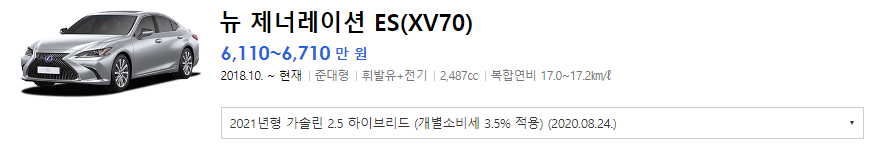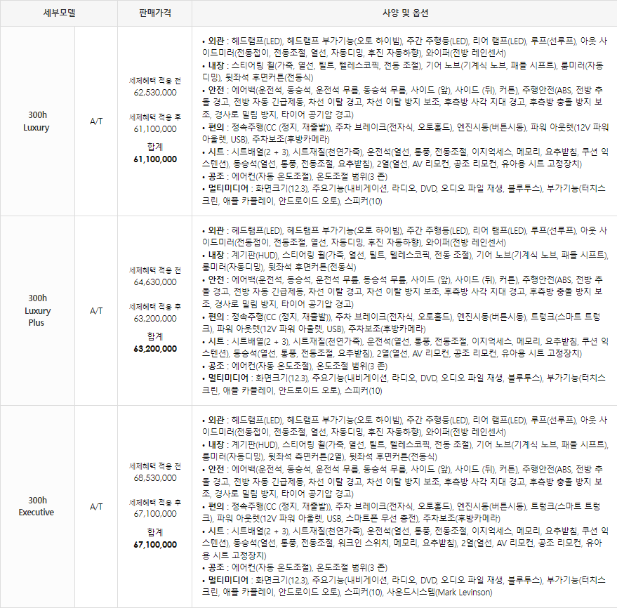 👇👇👇es300h 경쟁차량 신차 정보👇👇👇