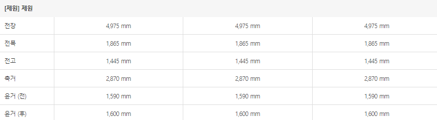 es300h 크기 제원표
