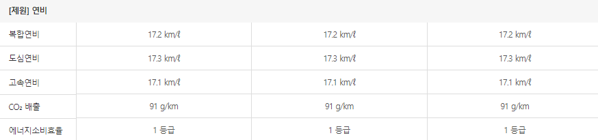 연비도 함께 알아보겠습니다. 아래는 es300h의 연비표입니다.