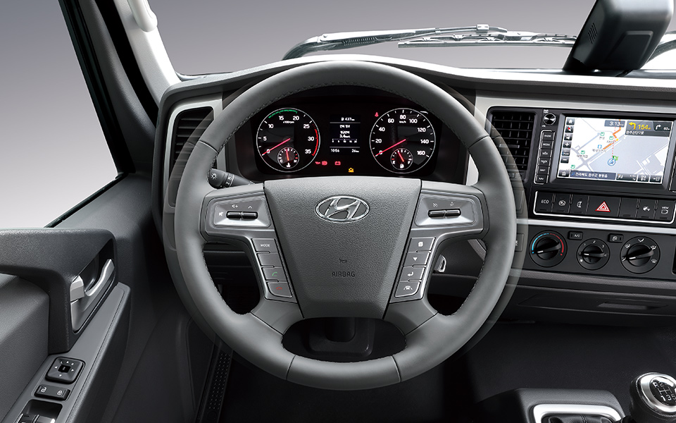 마이티(2.5톤)는 다양한 편의 사항을 갖추고 있습니다. 자동 에어컨, 현대의 인포테인먼트 시스템이 장착되어 있어 운전하는 동안 더욱 쾌적한 환경을 제공합니다.