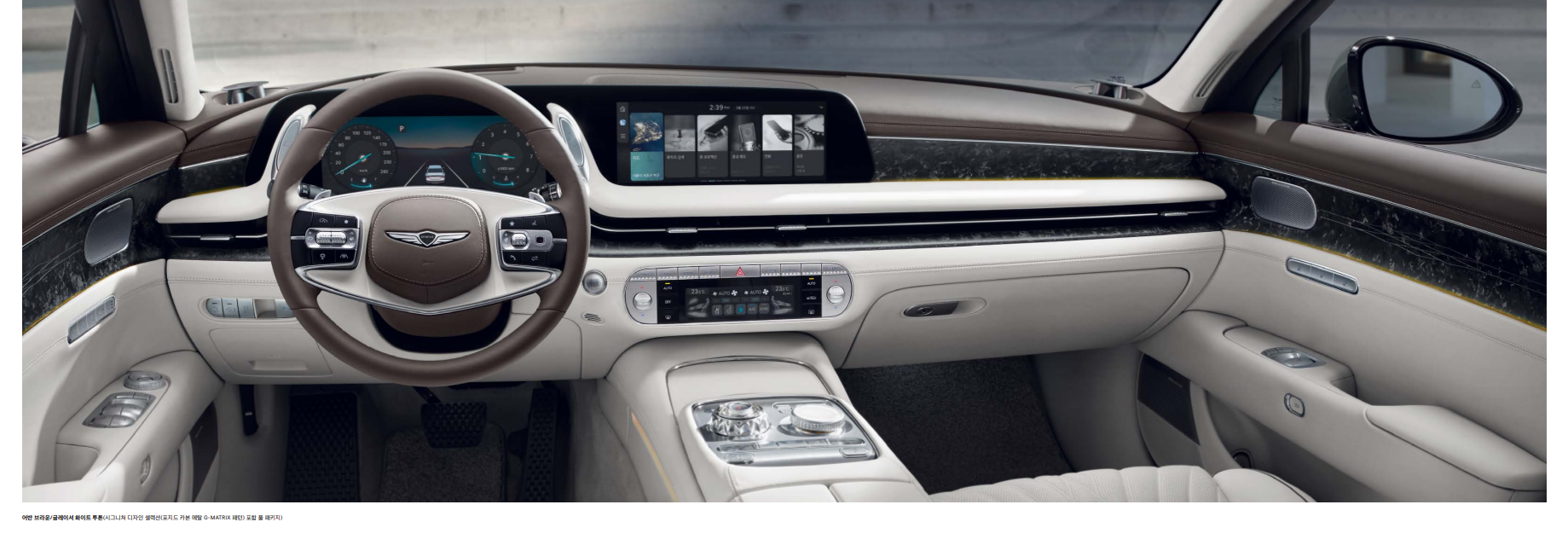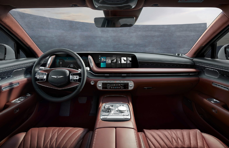 G90의 실내는 고급 소재와 최신 기술이 조화롭게 어우러져 럭셔리한 분위기를 연출합니다.