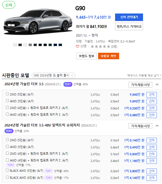 👇👇👇G90 경쟁차량 신차 정보👇👇👇