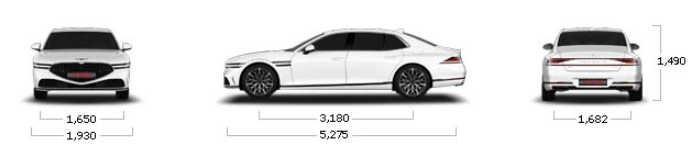 G90의 크기는 전장 5275mm, 전폭 1930mm, 전고 1490mm, 축거 3180mm입니다.