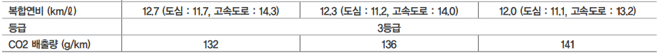 연비도 함께 알아보겠습니다. 아래는 트랙스 크로스오버의 연비표입니다.