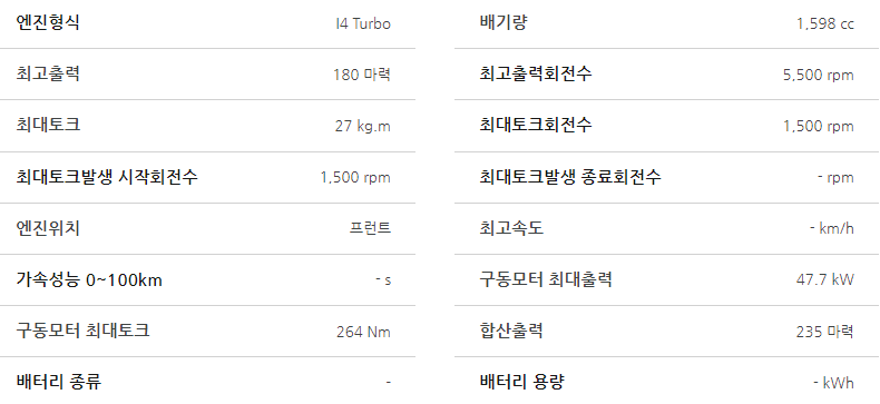 싼타페 하이브리드 제원표