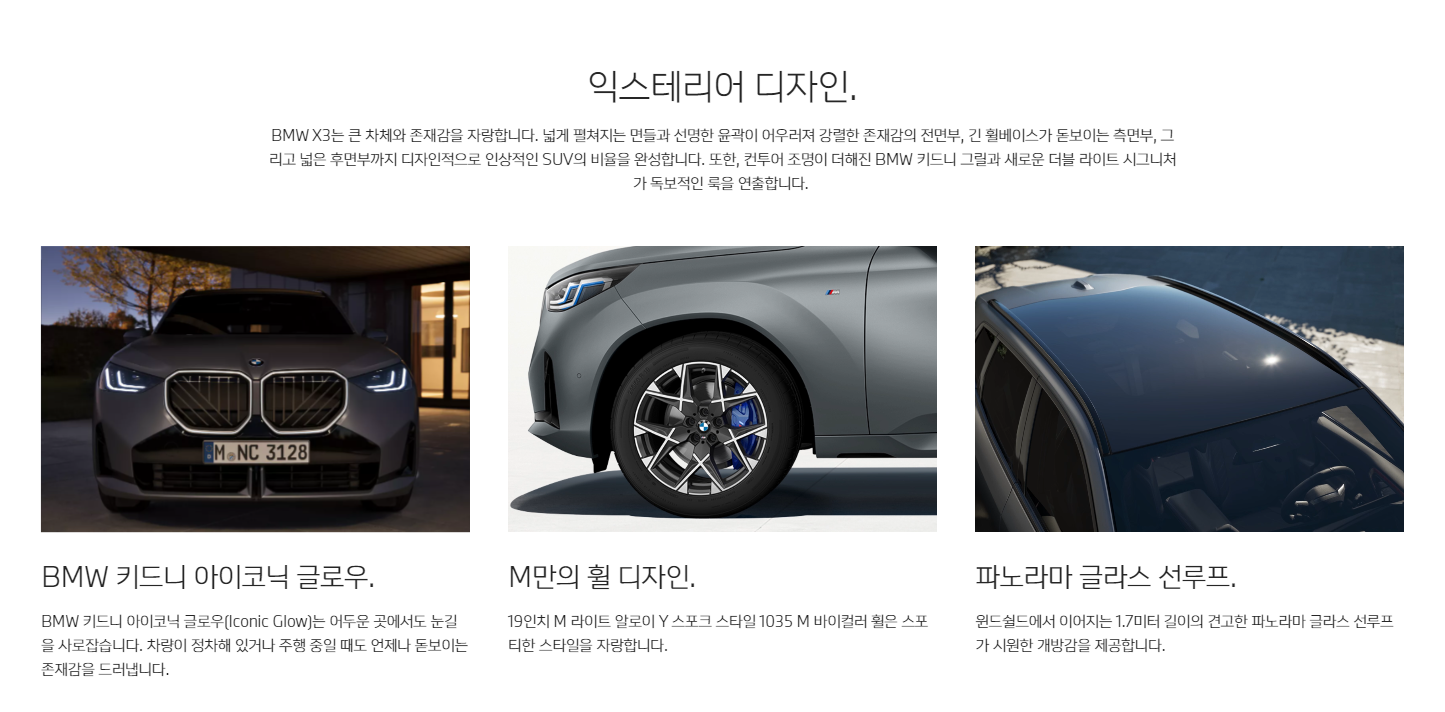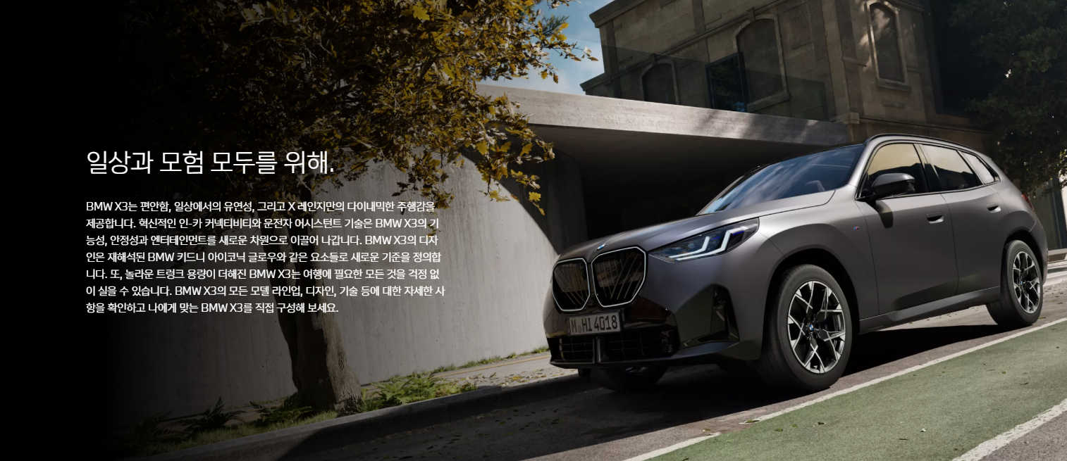 BMW X3는 럭셔리 SUV 시장에서 오랜 시간 사랑받고 있는 모델입니다. 뛰어난 주행 성능과 실용성, 그리고 고급스러운 디자인을 갖춰 프리미엄 SUV를 찾는 소비자들에게 매력적인 선택지가 되고 있습니다.