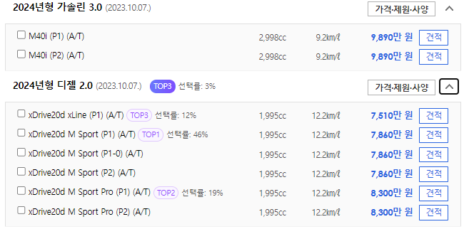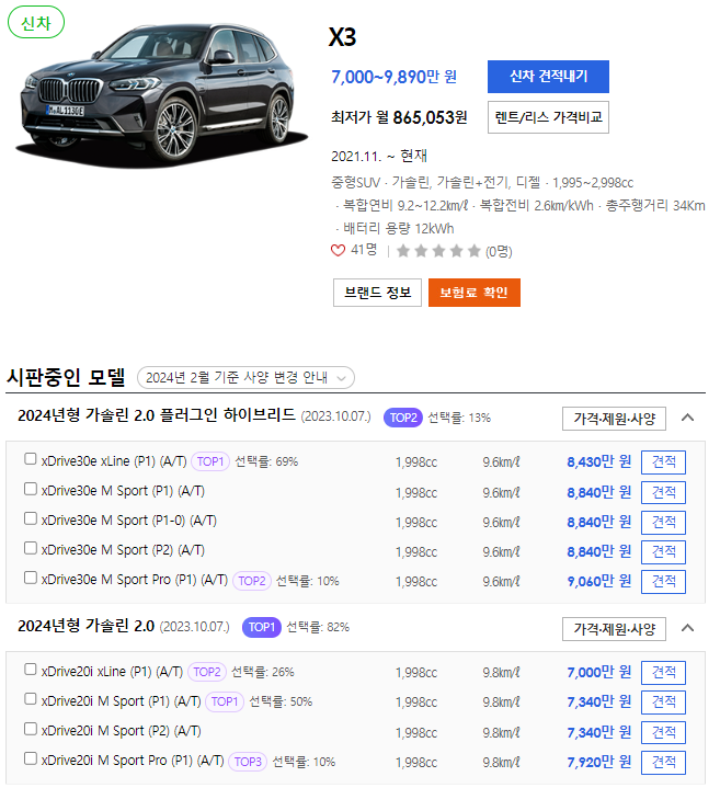👇👇👇X3 경쟁차량 신차 정보👇👇👇