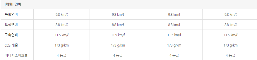 연비도 함께 알아보겠습니다. 아래는 X3의 연비표입니다.