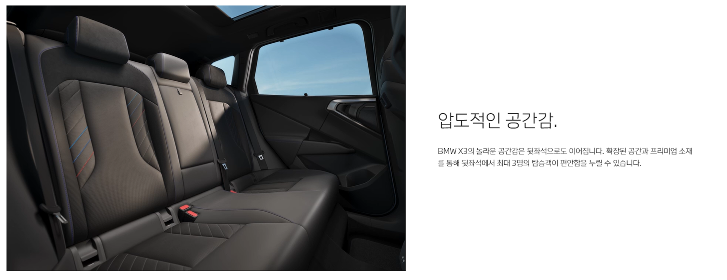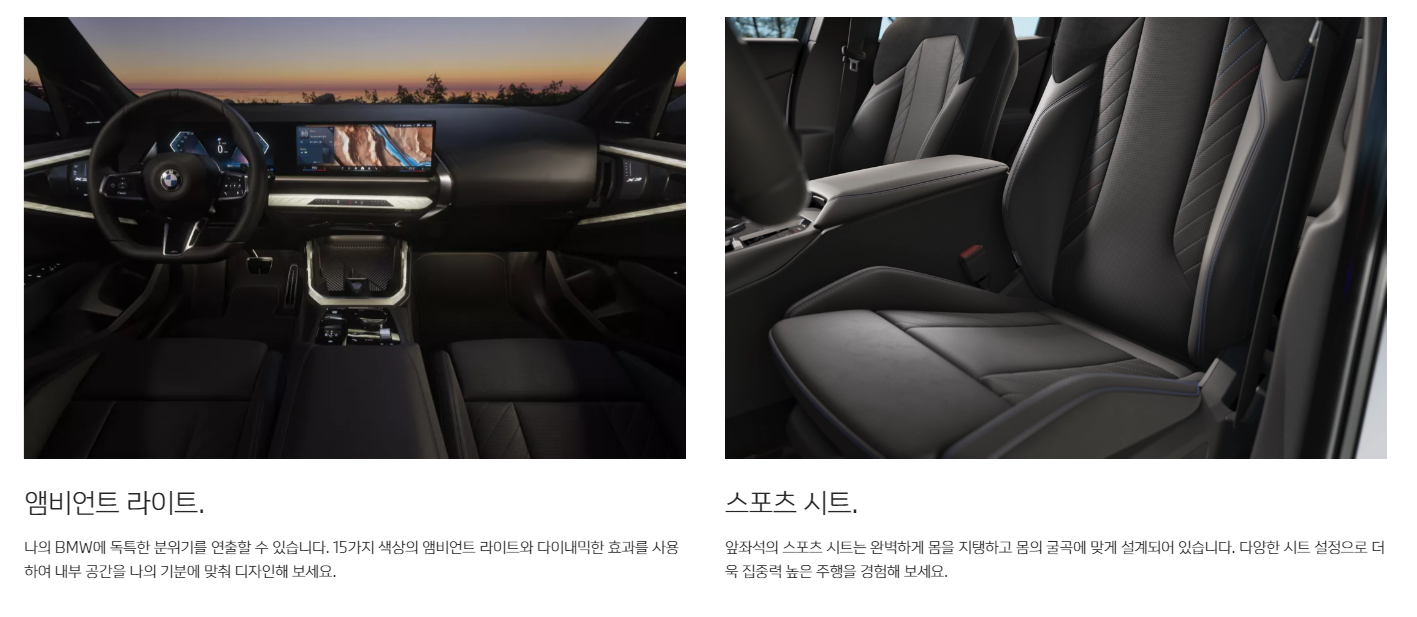 - 운전자 중심 설계: 스포츠 스티어링 휠, M 스포츠 시트 등 운전자에게 집중된 설계