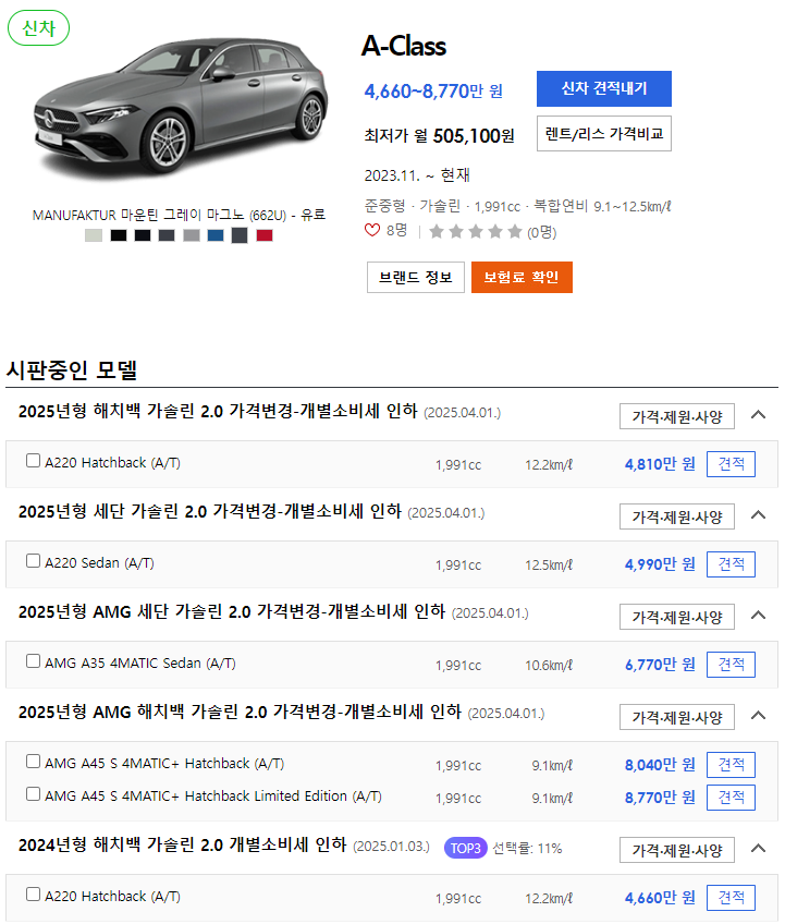 2025 벤츠 A클래스 가격표 (2) | 2025.04.12 |
