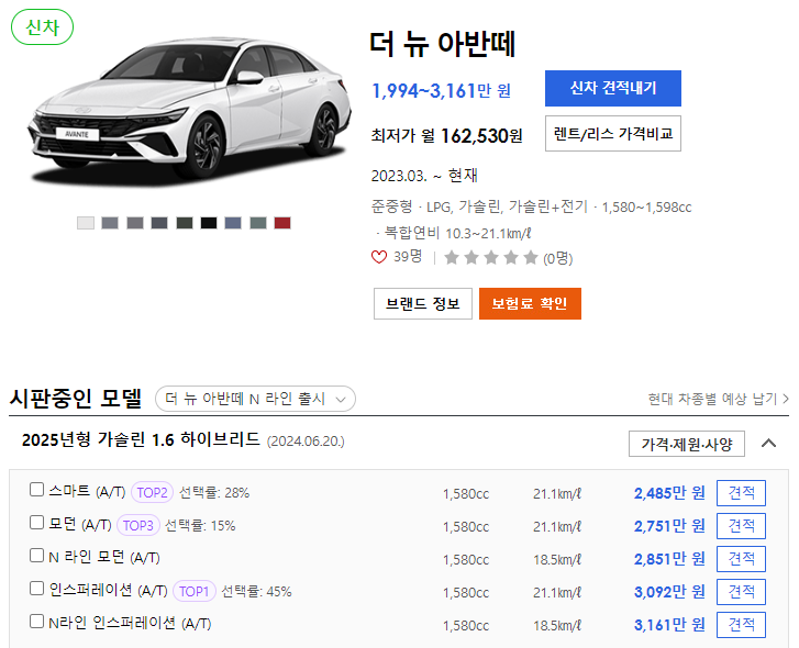 👇👇👇아반떼 하이브리드 경쟁차량 신차 정보👇👇👇