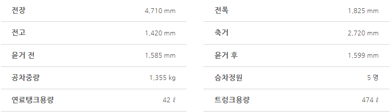 아반떼 하이브리드 제원표