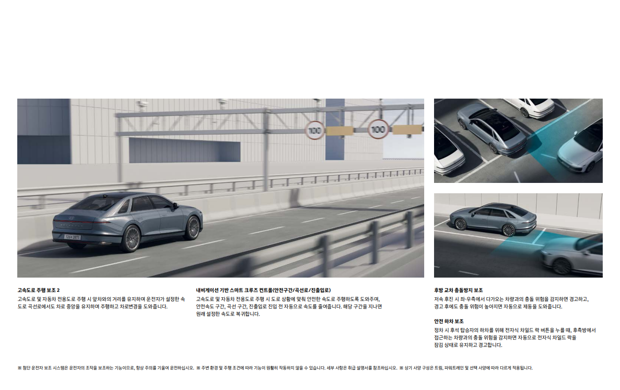- 첨단 운전자 보조 시스템(ADAS): 차선 유지 보조, 스마트 크루즈 컨트롤, 충돌 방지 보조 등 다양한 ADAS 기능을 탑재하여 안전 운전을 지원합니다.