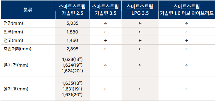 그랜저 하이브리드 크기 제원표