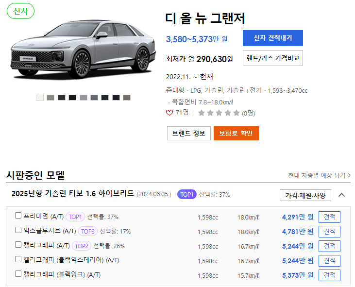 👇👇👇그랜저 하이브리드 경쟁차량 신차 정보👇👇👇