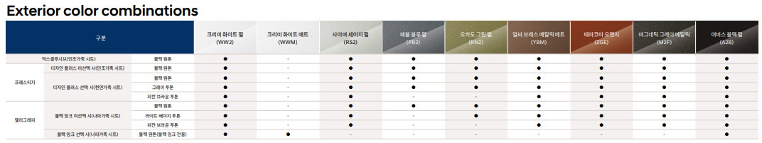 - 다양한 외장 컬러: 다양한 외장 컬러를 선택할 수 있어 개성을 표현할 수 있습니다.