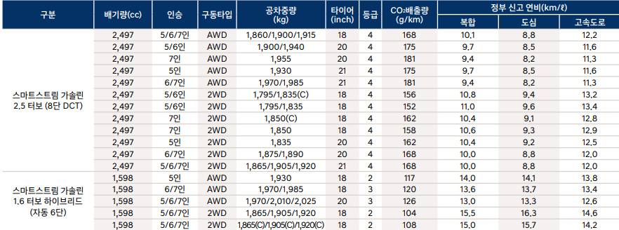연비도 함께 알아보겠습니다. 아래는 싼타페의 연비표입니다.