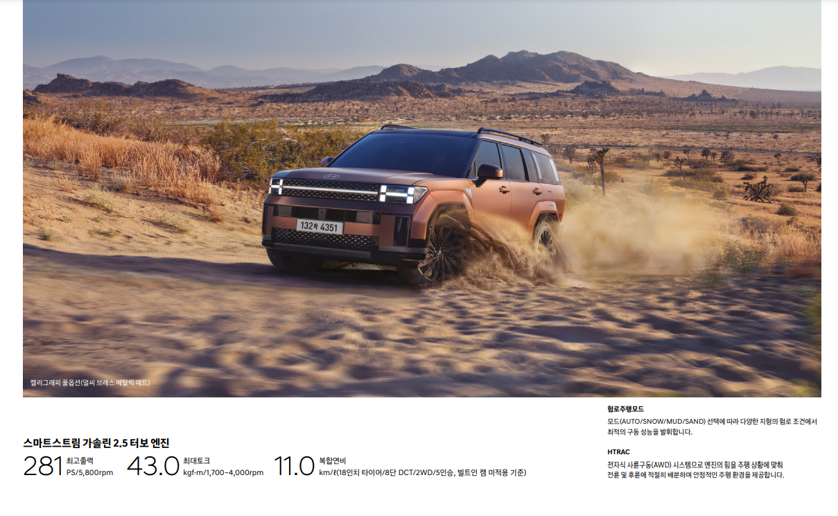 - 넓고 안정적인 비율: 넓고 안정적인 비율은 SUV 특유의 강인함을 더하며, 웅장한 자태를 연출합니다.