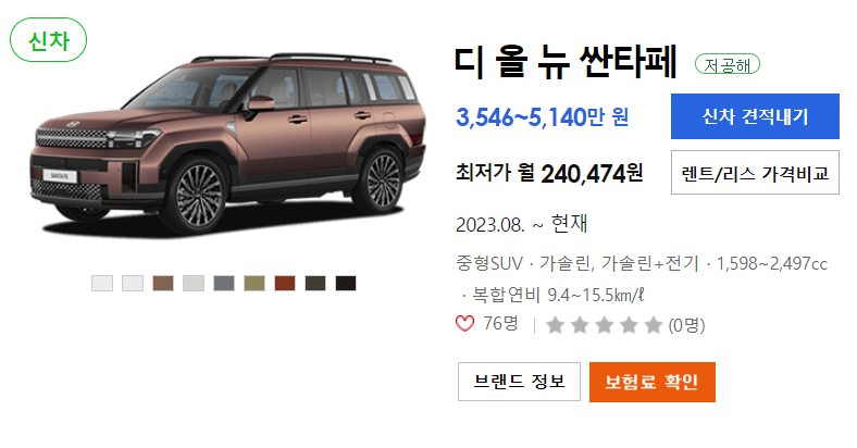 👇👇👇싼타페 경쟁차량 신차 정보👇👇👇